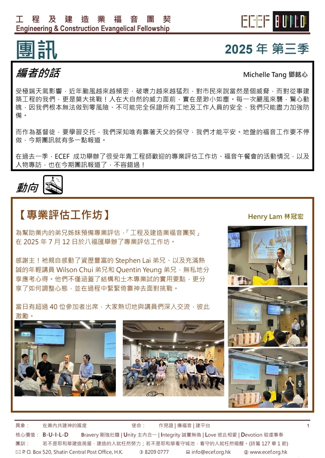 工程及建造業福音團契 核心價值