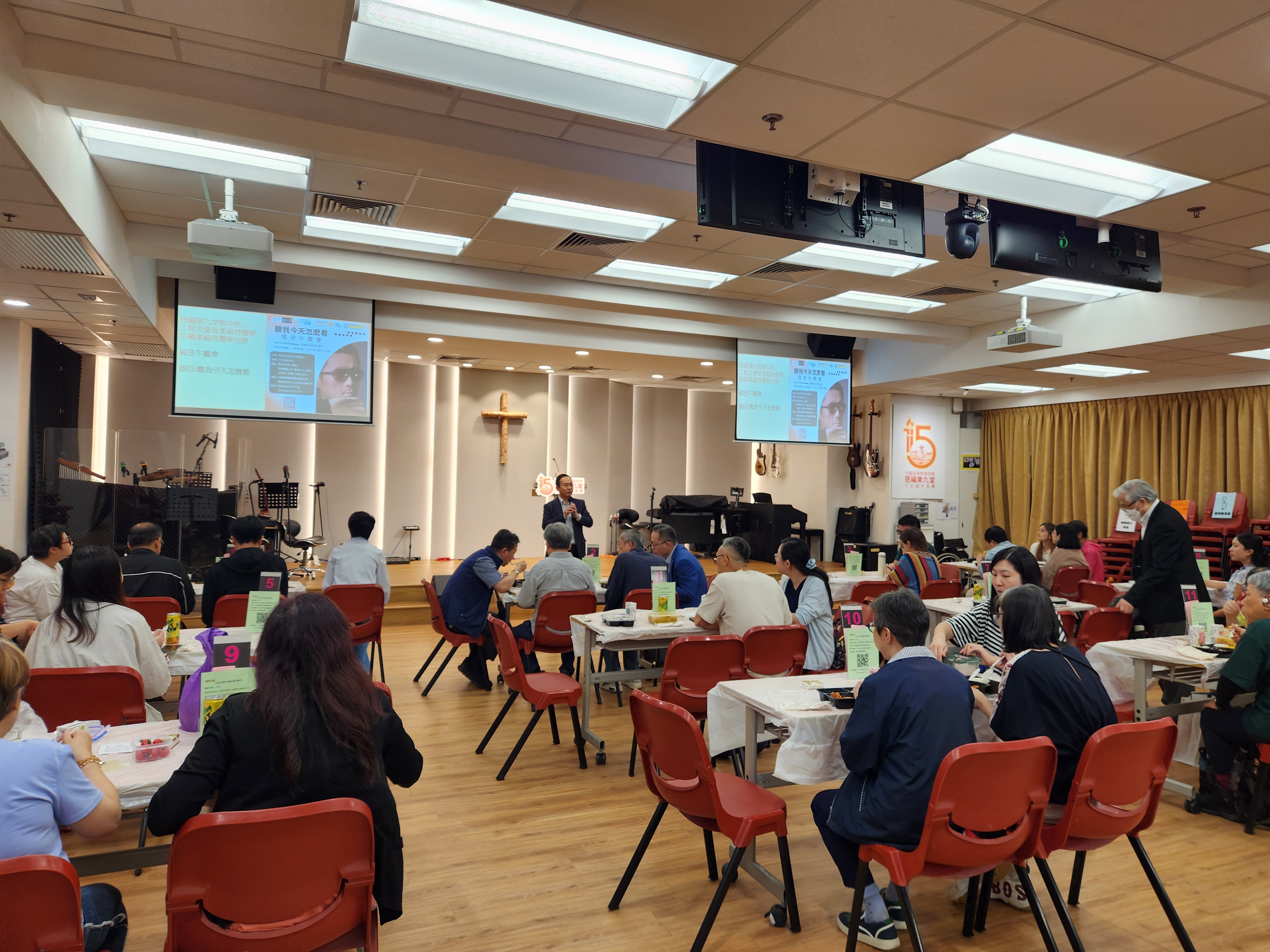 蒙上帝的祝福及帶領,很感恩我們於4月25日邀請了陳衍泓先生 (逗點 Comma) 與我們分享他的生命見證,主題是【聽我今天怎麼看】。他是【黑暗劇場】及【藝造人才】創辦人,及 2016年香港十大傑出青年。 陳先生是後天失明,他經歷許多無助,困難及掙扎,但黑暗並不是絕路,上帝帶領他,一步一步【看見】光明。上帝的愛擁抱他,即使面對完全失明,也能靠着耶穌,讓他更肯定人尋著生最有意義的方向。 當天有 46位東九業界朋友參與,並且其中12位是未信的新朋友,我們一起共進午餐,一起聽見證,彼此祝福。出席參與的主內弟兄姊妹及朋友,也很感動,陳先生與我們分享他面對身體殘疾的痛苦及挑戰,仍然有著耶穌實在的保守及同行,經歷上帝無限的祝福與恩典,我們每一位參與出席的朋友,也被受祝福及大大的鼓勵。 求主繼續大大使用東九福音午餐聚會,透過不同的見證分享,能夠讓更多新朋友認識主。